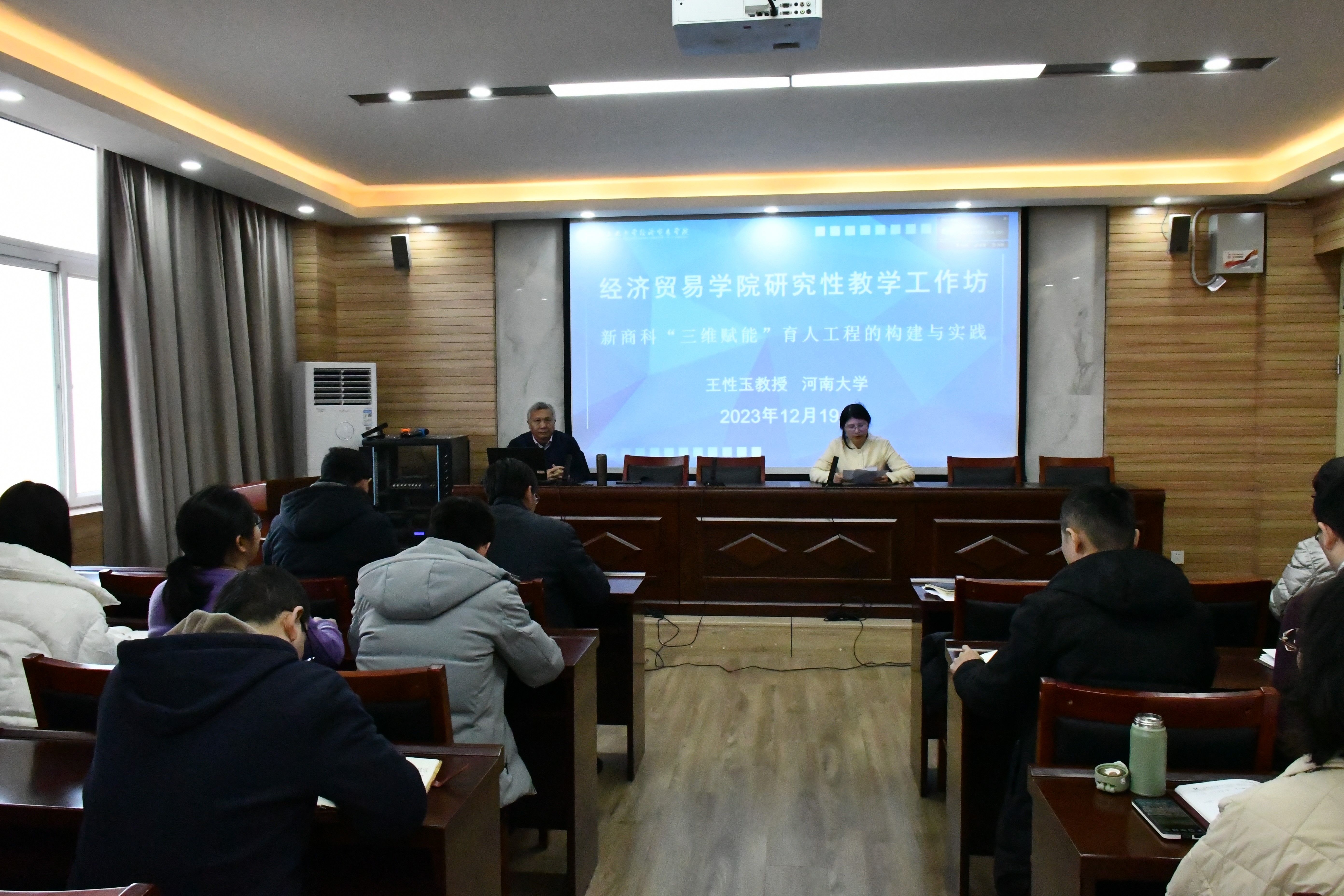在3号楼3605会议室举办以“新商科‘三维赋能’育人工程的构建与实践”为主题的第二期研究性教学专题工作坊。本次工作坊由河南大学二级教授、博士生导师、教育部高等学校工商管理类教学指导委员会委员王性玉主讲,足球比分网站
