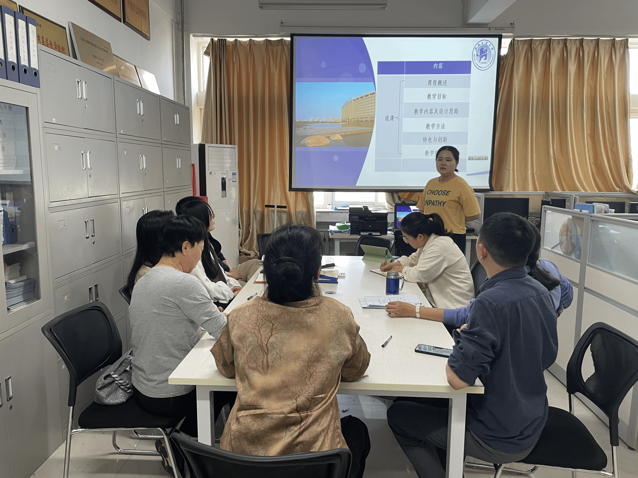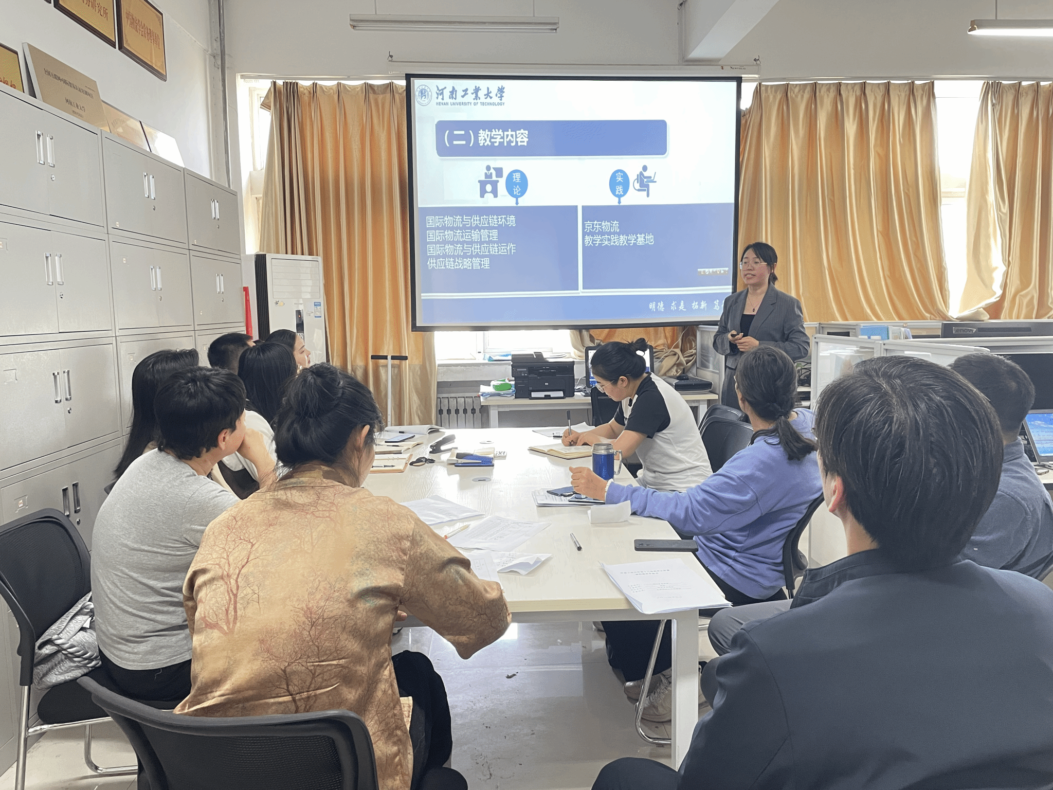 陈思老师结合申报书重点从课程概述、教学目标、教学内容及设计思路、教学方法及特色与创新等方面对《国际贸易实务》课程进行了说课。张小蒙老师重点从教学内容、学情分析、教学方法及教学设计等四个方面展开《国际供应链与物流管理》课程的说课。两位青年教师完成说课展示后,朱坤林、吕玉花、王殊和杨文哲等从教学设计与内容深度、PPT布局和图片引用、课程思政融入等方面提出了具有指导性的建议,并希望青年教师可以结合课程申报书,认真准备说课脚本,以赛促教,不断练就过硬的教育教学本领。