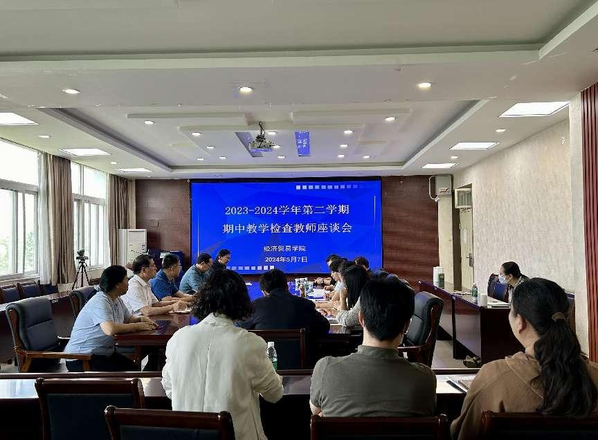 于5月7日召开四场期中教学检查学生座谈会和一场教师座谈会。学校督导马丁老师、学院领导班子成员、各系主任和任课教师代表、学生代表参加了座谈会。学生座谈会由各系主任主持,教师座谈会由副院长朱坤林主持。