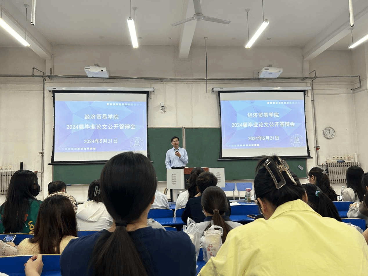 在博识楼3135教室隆重举行了2024届本科毕业生毕业论文公开答辩会。学校督导马丁老师、戴晓鹂老师担任点评专家,学院各专业优秀教师代表作为答辩委员参加会议。会议由副院长朱坤林主持。