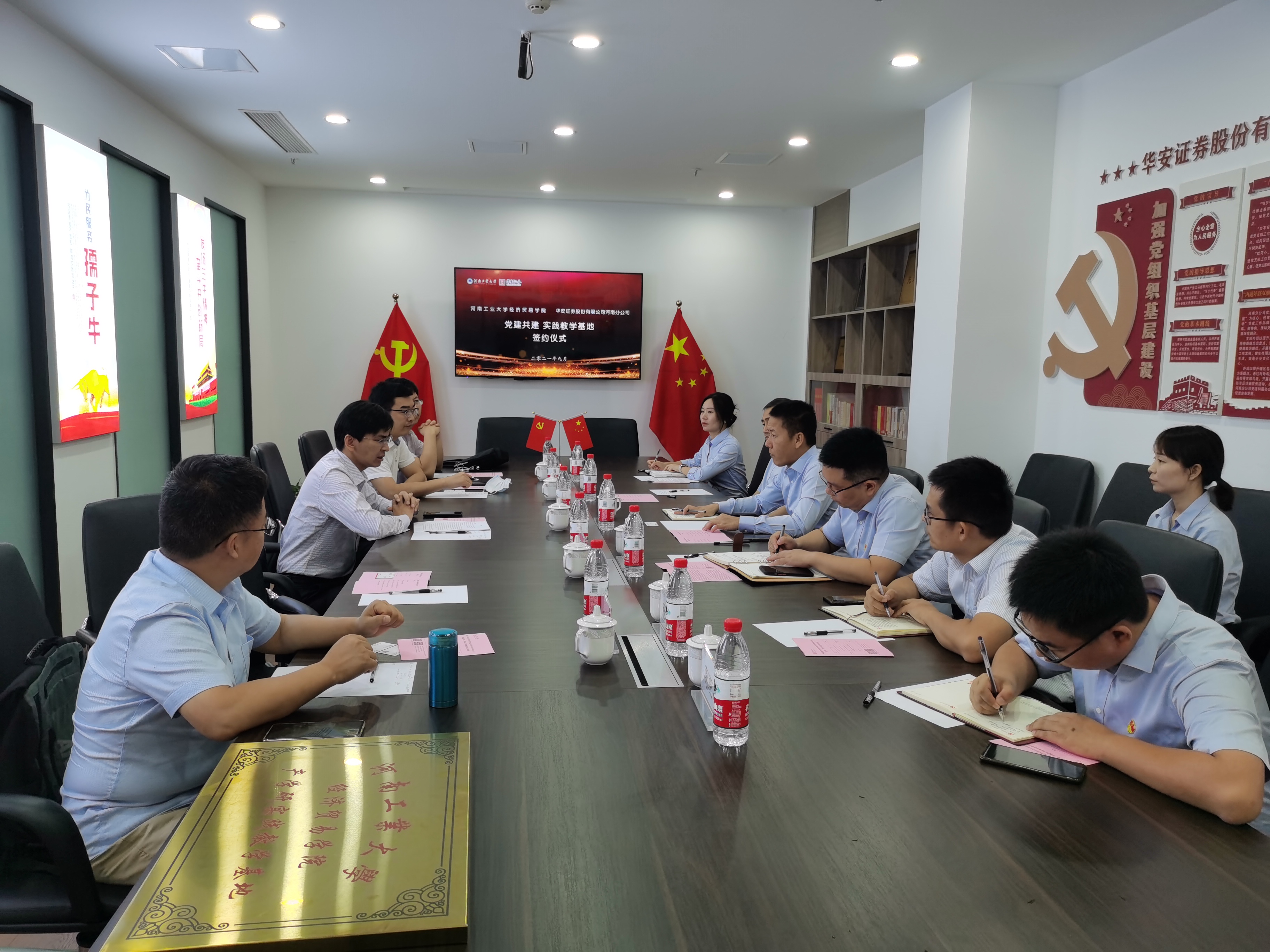 在华安证券河南分公司举行产学研实践教学基地以及双方党建共建签约和揭牌仪式。足球比分网站