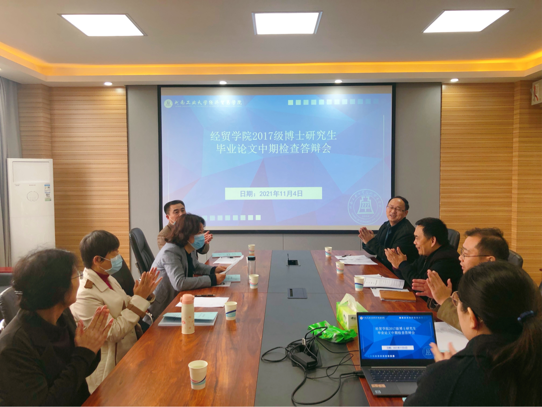 召开2017级博士研究生毕业论文中期检查答辩会。本次答辩会由李文启副院长主持,答辩组组长由河南工程学院李利英校长担任,答辩组成员分别为梁瑞华教授、杨茂教授、邓俊淼教授、郭力副教授。经贸学院孙中叶院长作为博士生指导老师也列席此次答辩会。学院部分教师与在读博士研究生参与本次答辩会。