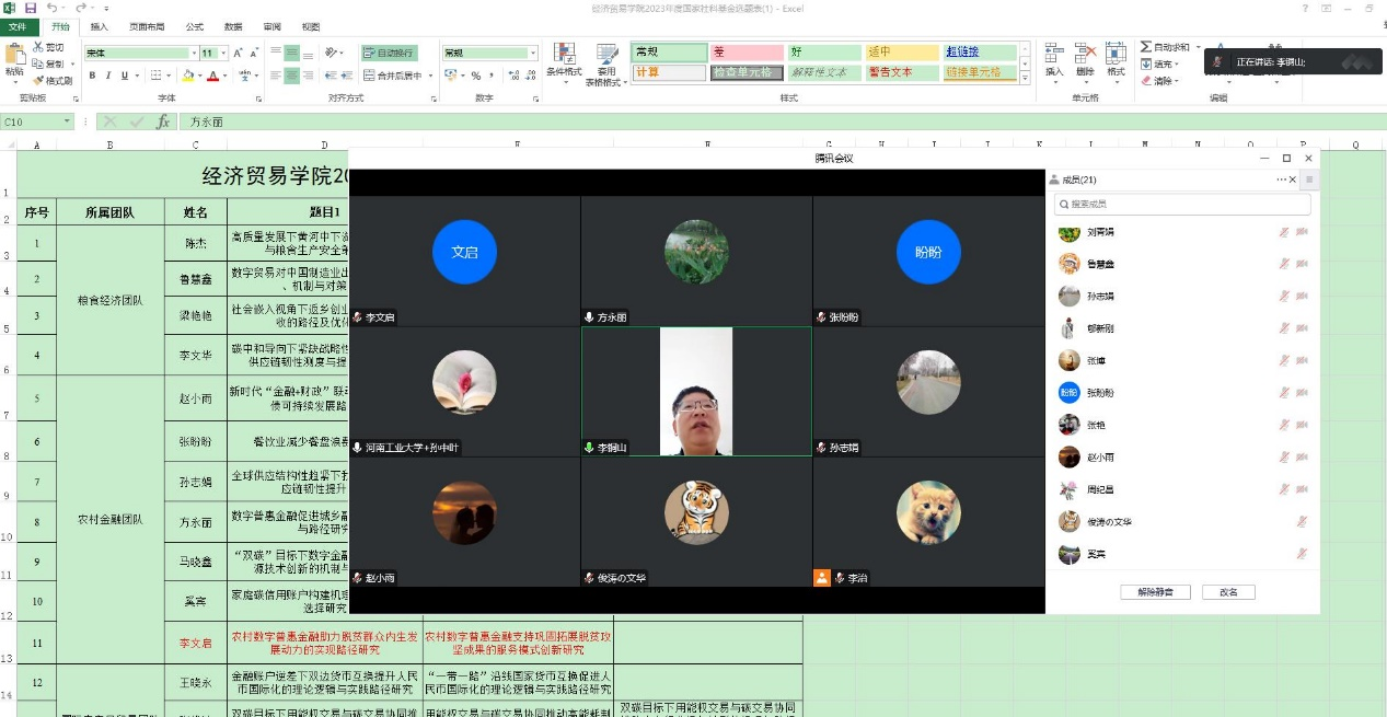 院长孙中叶、副院长李文启及粮食经济、农村金融团队全体人员参会。