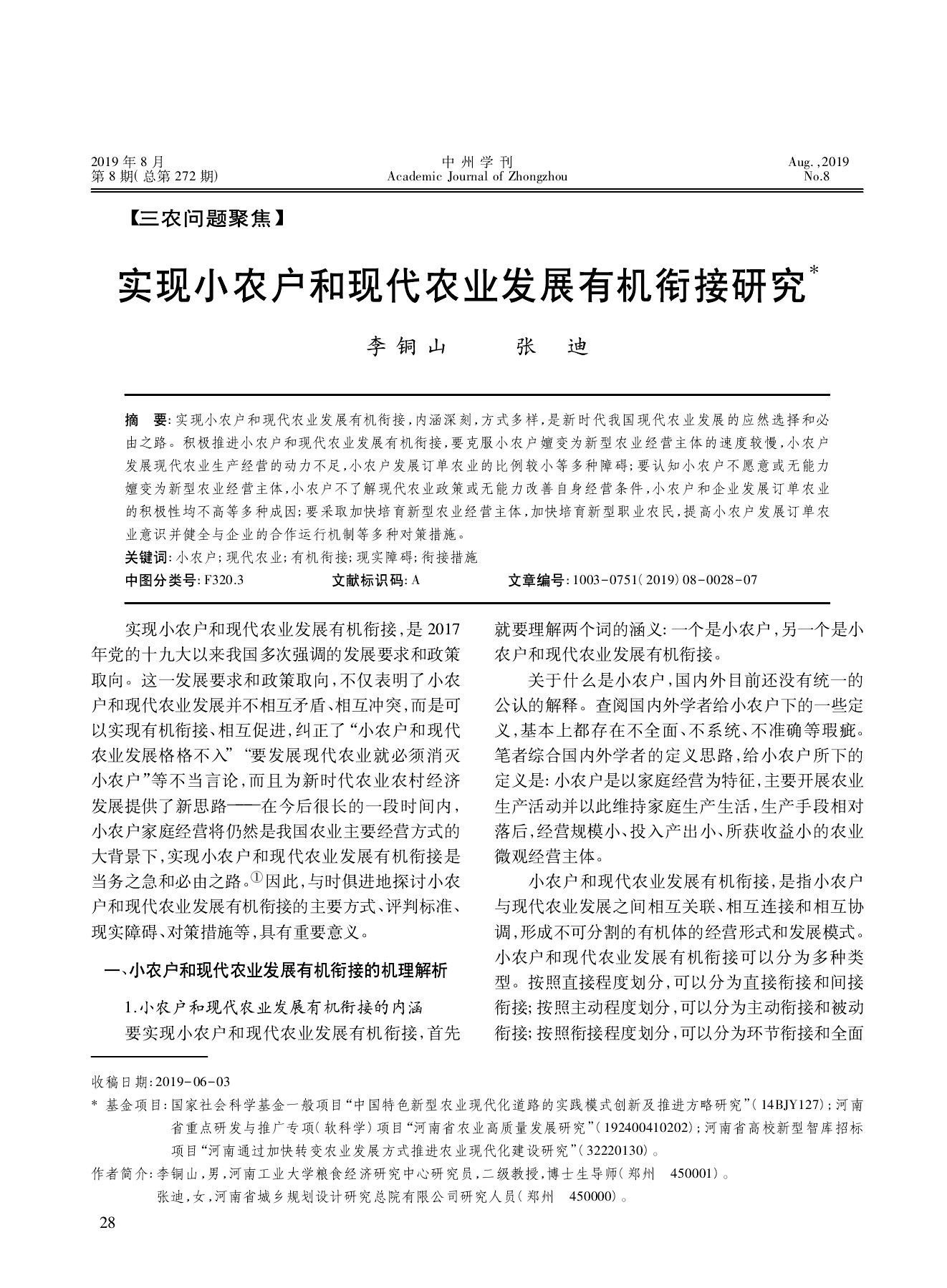 高水平论文3——实现小农户和现代农业发展有机衔接研究