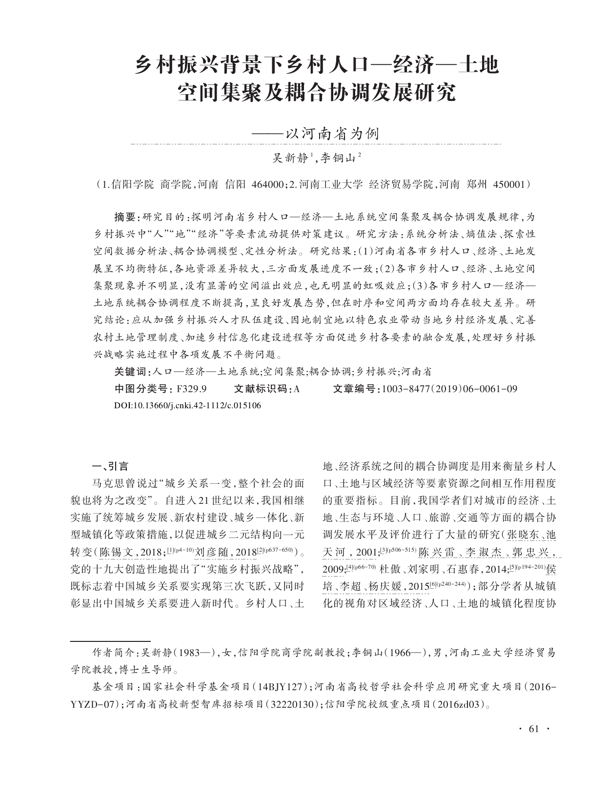 高水平论文5——乡村振兴背景下乡村人口-经济-土地空间集聚及耦合协调发展