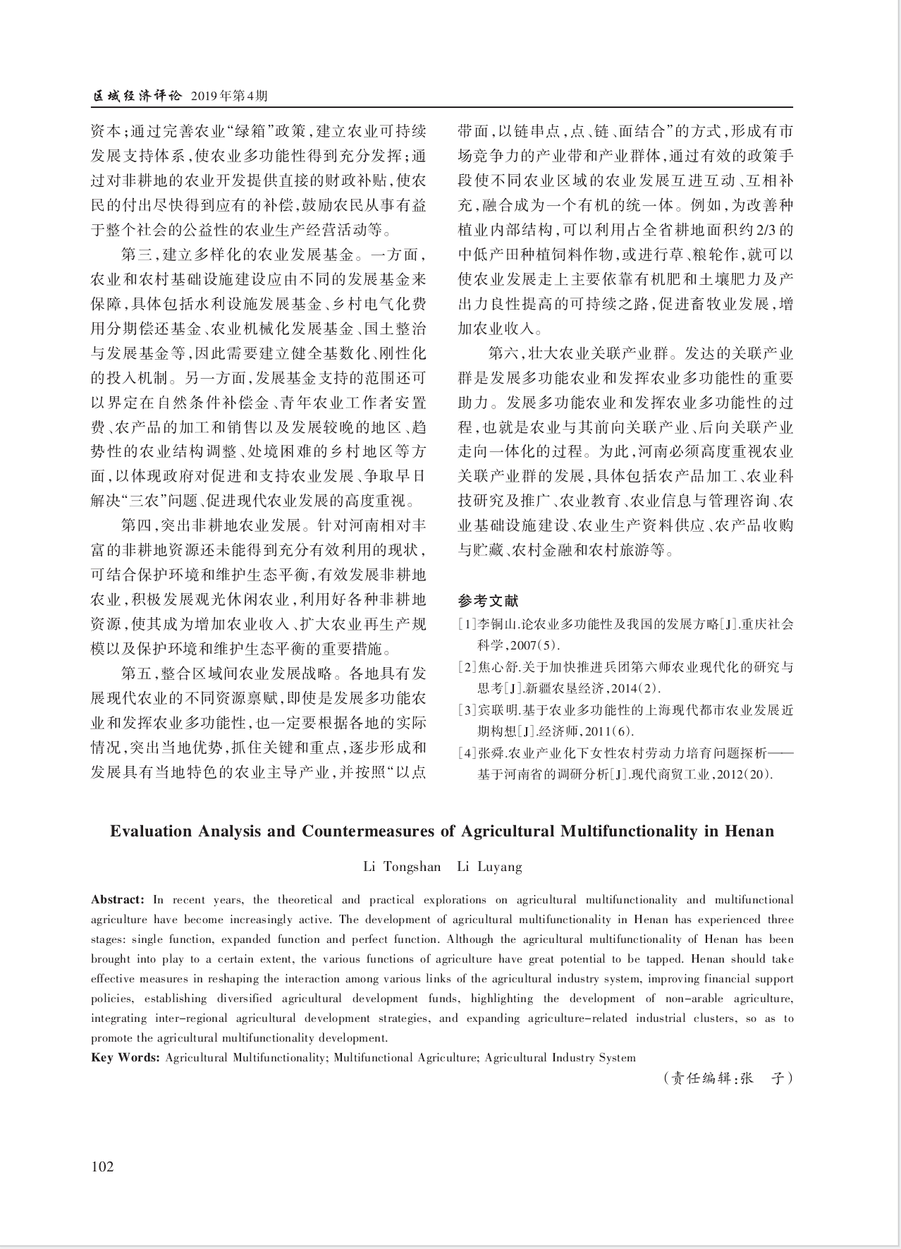 高水平论文7——河南农业多功能性的评价分析及对策建议