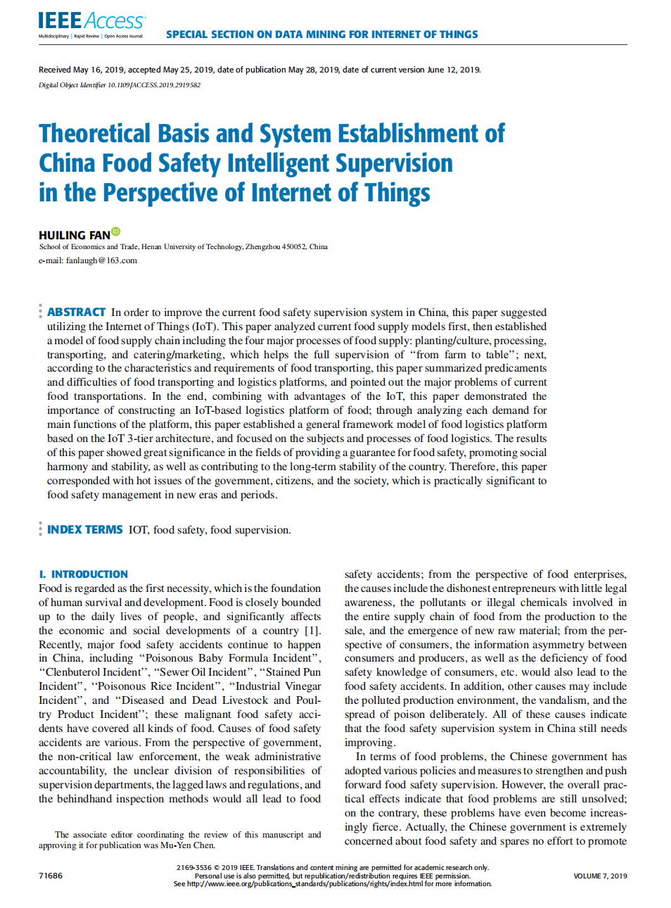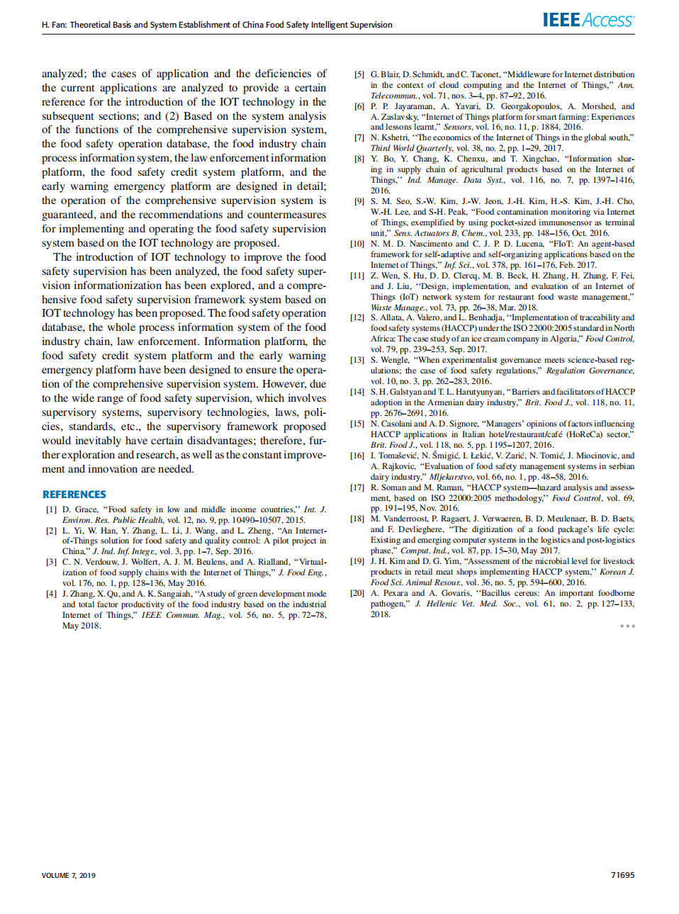 高水平论文8——Theoretical Basis and System Establishment of China Food Safety Intelligent Supervision in the Perspective ofinternet of things