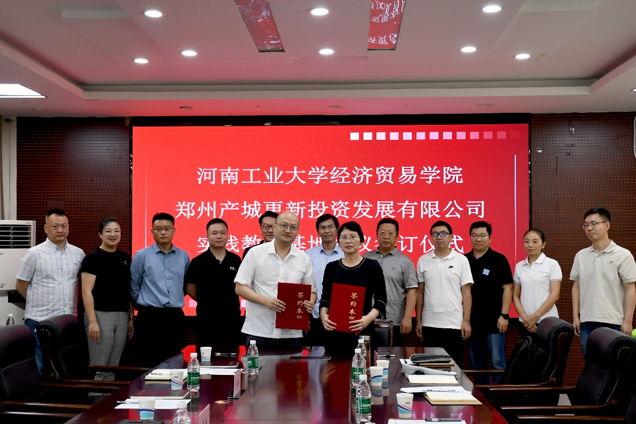 为进一步推进高校毕业生就业工作和校企融合发展,继5月25日朱坤林副院长带领金融系团队老师到郑州产城更新投资发展有限公司(以下简称“郑州产城更新”),开展“访企拓岗”活动之后,经过多轮讨论协商,双方共建产学研实践教学基地签约仪式于6月20日上午在学院会议室顺利举行。院长孙中叶、副院长朱坤林、挑战杯功勋导师翟书斌、金融系党支部书记刘变叶、金融科技中心主任宋博、实验室主任吴成浩,郑州产城更新总经理杨扬、副总经理周琦、副总经理裴振、产业运营总监靳彦斌及产业研究与基金投资部同事出席签约仪式。