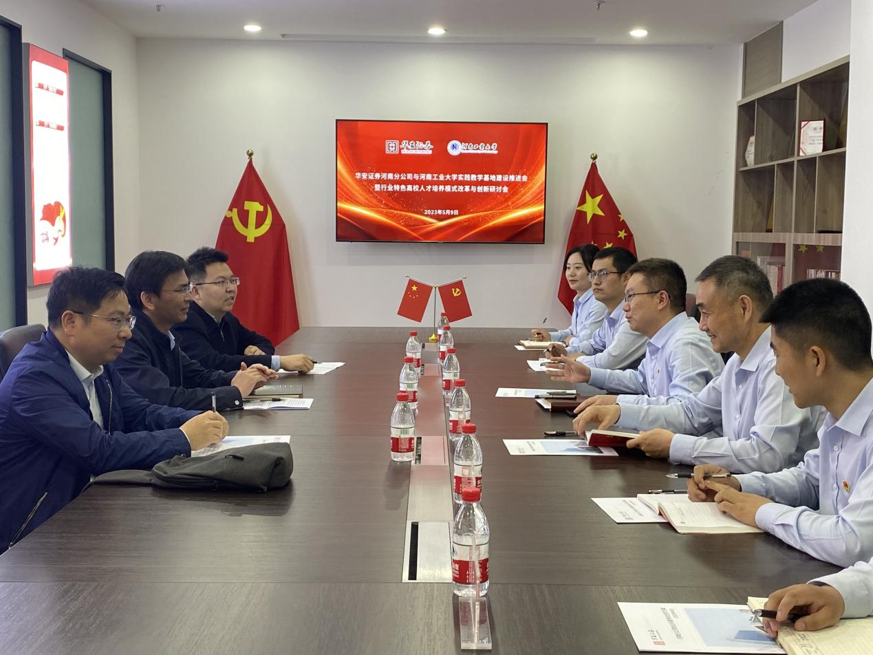 为推进金融学专业建设,落实河南省大学生校外实践教育基地各项任务,进一步开展访企拓岗促就业工作,2023年5月9日,由华安证券和河南工业大学共同指导,华安证券河南分公司、足球比分网站 联合主办的“河南工业大学新文科(金融学)大学生校外实践教育基地建设推进会暨粮食行业特色高校人才培养模式改革与创新研讨会”在华安证券河南省分公司举行,会议由足球比分网站 实验室主任吴成浩主持。