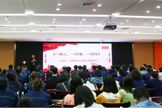 学习党史,感受信仰之光、精神之钙、力量之源。河南工业大学马克思主义学院丁建波教授讲党史课《一群人,一件事,一百年》。精彩的讲述帮助大家厘清历史脉络,让大家弄清楚中国共产党从哪儿来、往哪儿去,加深了对党的历史逻辑、理论逻辑、实践逻辑的把握,加深了对其时代意义、理论意义、实践意义、世界意义的领会。赓续红色基因,把握时代脉搏,厚植爱党爱国热情。